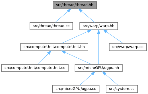 | | Represents a GPU threadThe Thread class encapsulates the state and behavior of a GPU thread, including its ID, execution state, and register file. Each thread can be active or inactive, and it has a set of registers that can be read from and written to during instruction execution. More...